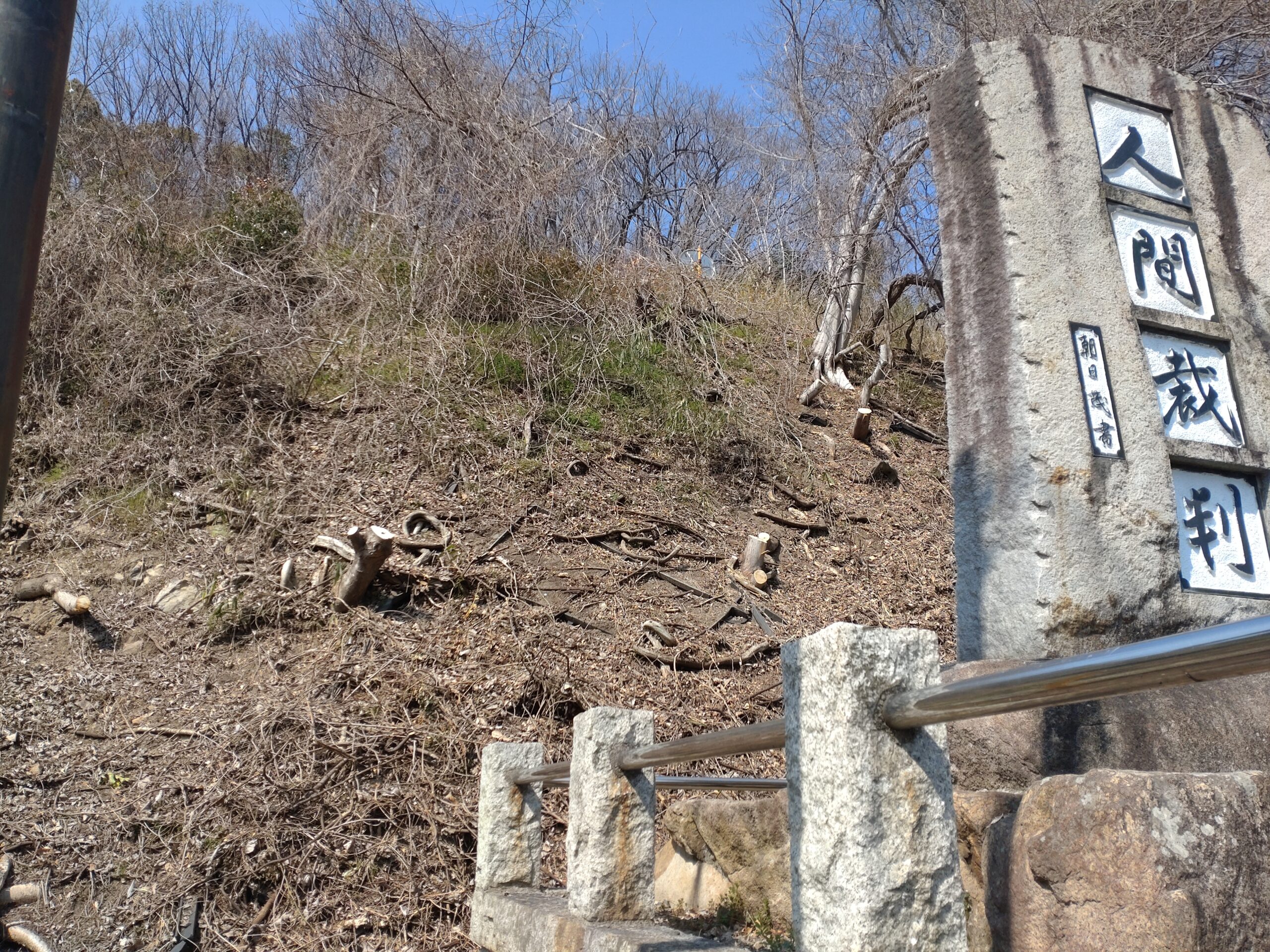 「人間裁判の碑」周辺が立ち木で覆い隠されていましたが、このほど、国立病院?が法面に生えていた立ち木を伐採してくれ、「碑」がどこからもよく見えるようになりました。